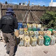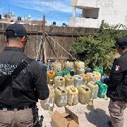 En el operativo, las autoridades aseguraron seis contenedores tipo bidón con capacidad de 50 litros, 33 contenedores tipo bidón con capacidad de 20 litros, los cuales contenían líquido transparente, al parecer hidrocarburo.